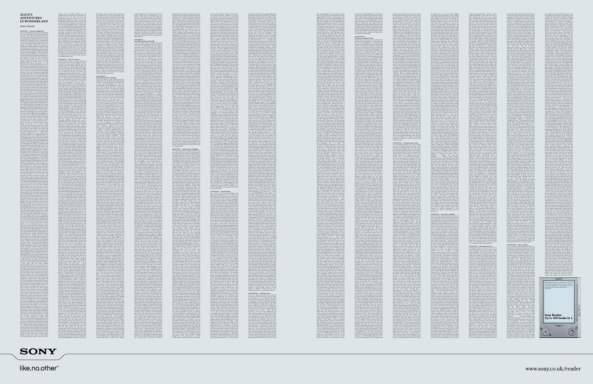 This was a European campaign we created whilst at Fallon, to launch Sony's E-reader (their answer to a Kindle). We designed each piece of print to contain an entire book. which was a challenging but fun process. You could say these are the ultimate long copy ads, although sadly we can't take credit for the writing.